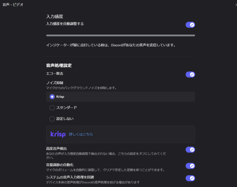 入力感度がちゃんと緑に点灯するかは絶対にリモート対戦を行う前には確認しておこう。マイクに音声を入れてここが緑にならない場合はDiscord側か、OS側、マイクのどこかで何かが起きている。だいたいPCの設定でミュートになっていることが多い。ショートカットキーに手が触れて勝手にミュートになっているがそれに気付いていない、というハマりは相当多く見たので気を付けて。マイク自体もミュートボタンがオンになっている場合があった。